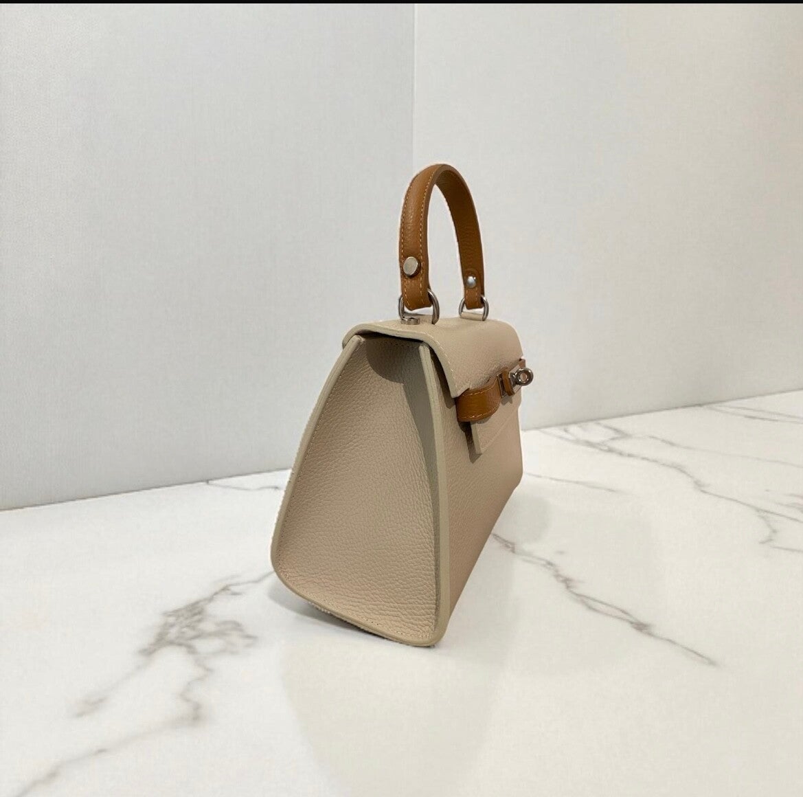 La borsa Grace è un omaggio alla raffinatezza italiana: realizzata a mano in pelle pieno fiore, si distingue per la sua silhouette strutturata, il manico rigido e la chiusura dorata che aggiunge un tocco di luce. Il verde intenso, ispirato ai paesaggi del Garda, dona carattere e versatilità, perfetta sia per il giorno che per la sera.