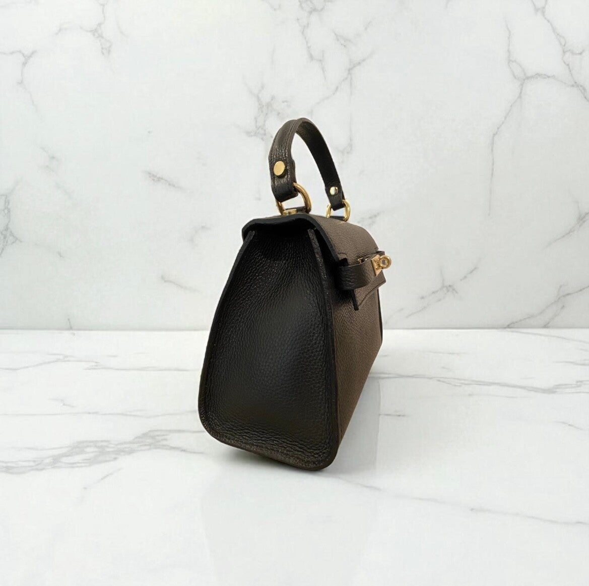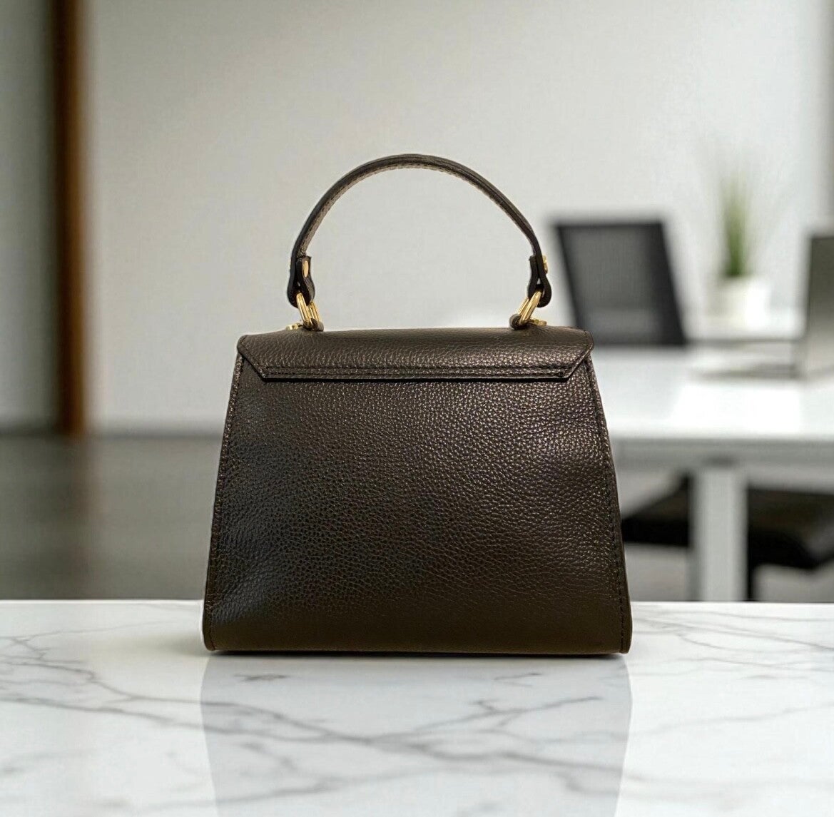 La borsa Grace è un omaggio alla raffinatezza italiana: realizzata a mano in pelle pieno fiore, si distingue per la sua silhouette strutturata, il manico rigido e la chiusura dorata che aggiunge un tocco di luce. Il verde intenso, ispirato ai paesaggi del Garda, dona carattere e versatilità, perfetta sia per il giorno che per la sera.