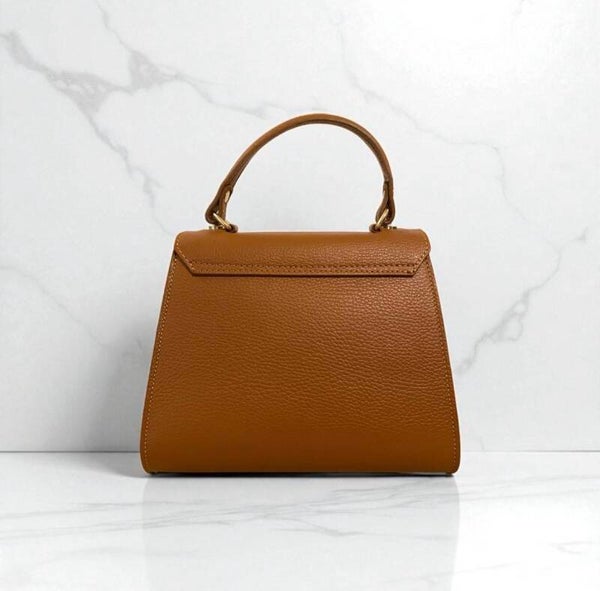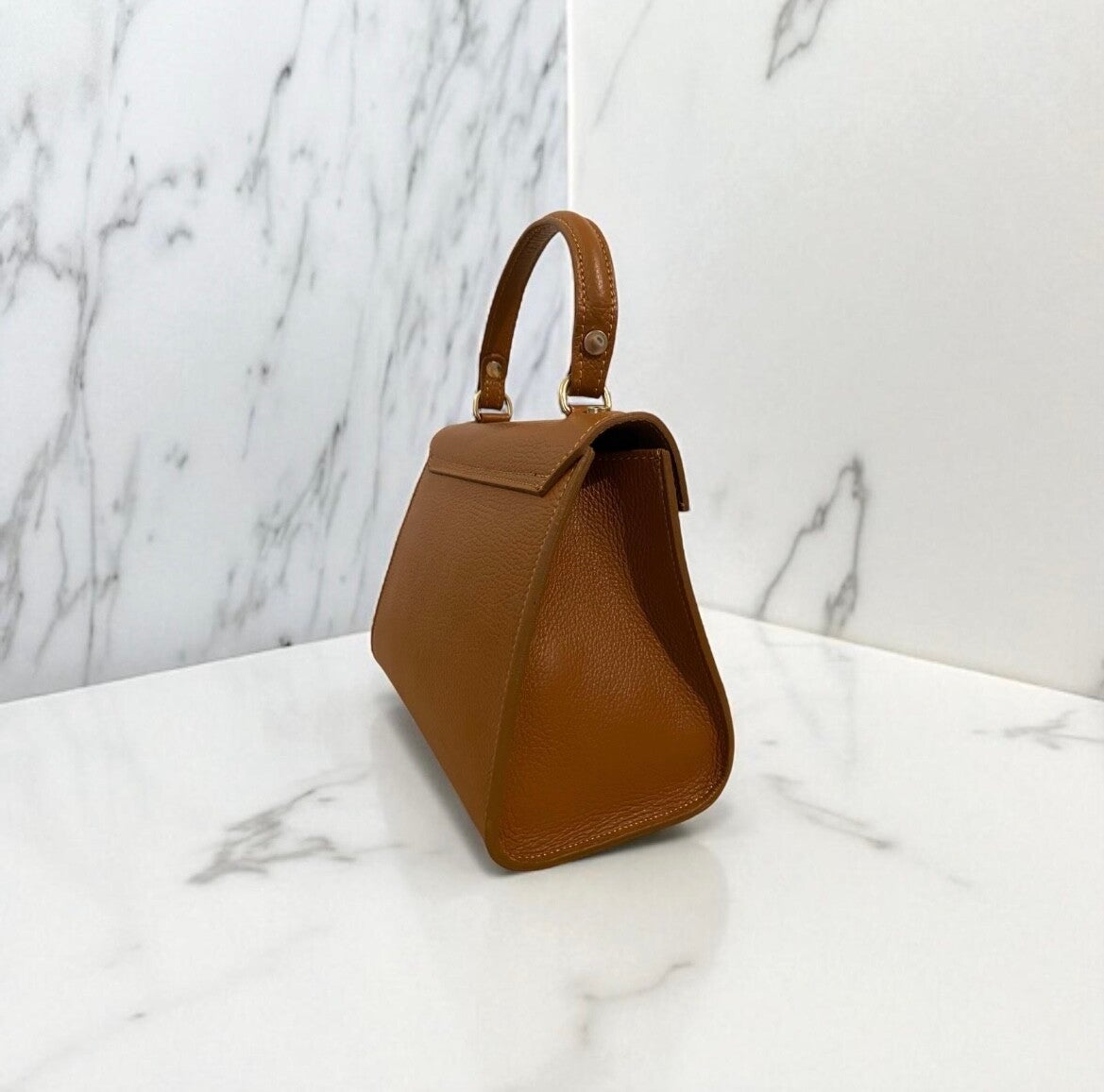 La borsa Grace è un omaggio alla raffinatezza italiana: realizzata a mano in pelle pieno fiore, si distingue per la sua silhouette strutturata, il manico rigido e la chiusura dorata che aggiunge un tocco di luce. Il verde intenso, ispirato ai paesaggi del Garda, dona carattere e versatilità, perfetta sia per il giorno che per la sera.
