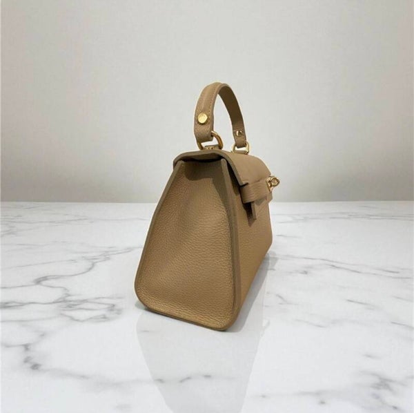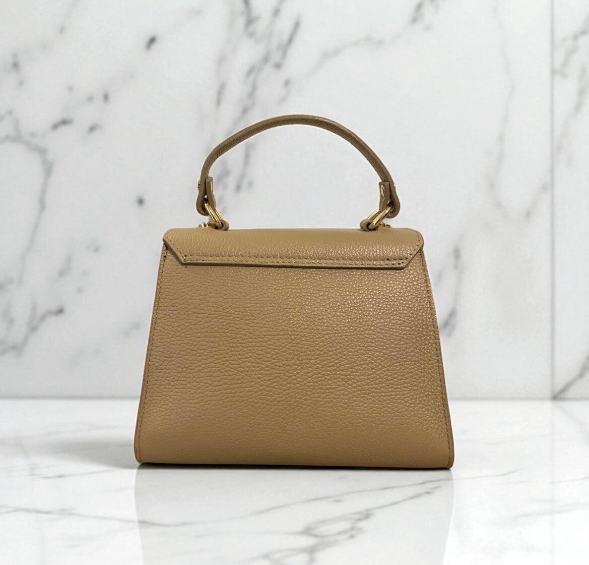 La borsa Grace è un omaggio alla raffinatezza italiana: realizzata a mano in pelle pieno fiore, si distingue per la sua silhouette strutturata, il manico rigido e la chiusura dorata che aggiunge un tocco di luce. Il verde intenso, ispirato ai paesaggi del Garda, dona carattere e versatilità, perfetta sia per il giorno che per la sera.